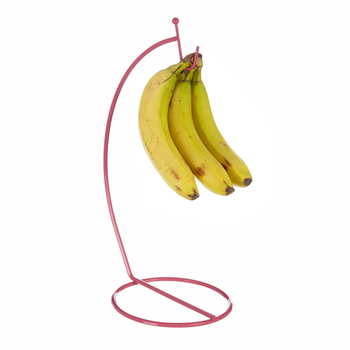 China Hardware Factory Home Kitchen Hot Pink Plum Fruit Storage Banana Basket Hanger Wire Stand for Banana Grapes Standing